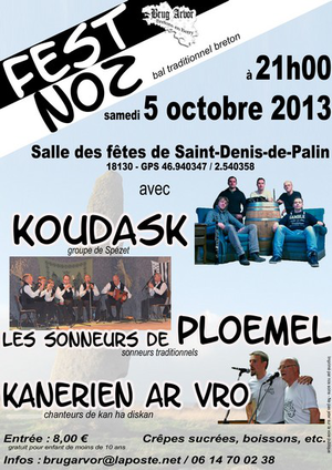 Fest Noz à Saint-Denis-de-Palin le Samedi 05 octobre 2013