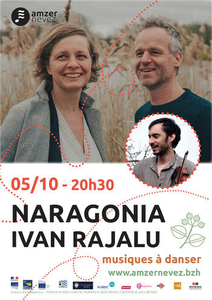 Musiques à danser - Pascale Rubens et Toon Van Mierlo du groupe Naragonia n’ont pas leur pareil pour nous confectionner des petits plats musicaux de toute beauté, succulents à souhait, voluptueux et intimistes… A découvrir sur le parquet d’Amzer Nevez. - Ivan Rajalu, dit « Ivan du Rêve », fera danser le public au son du violon et de l’accordéon diatonique. Préparez-vous à un bal perché !