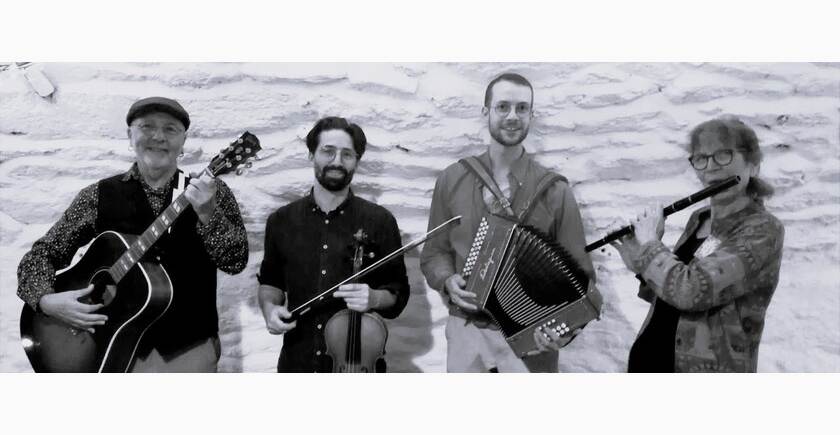 Hervé à la guitare, au banjo et au chant, vous racontera ces histoires que des balades ont gravé dans la mémoire collective. Joachim teintera cela d'émotion avec son violon fiddle. Saupoudrez l'ensemble des flûtes whistles irlandaises de Sabine et de l'accordéon endiablé de David, et embarquez avec nous pour le cœur battant des hommes et des femmes des rives des mers celtiques.