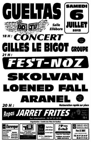Concert et Fest-Noz à Gueltas le Samedi 06 juillet 2013
