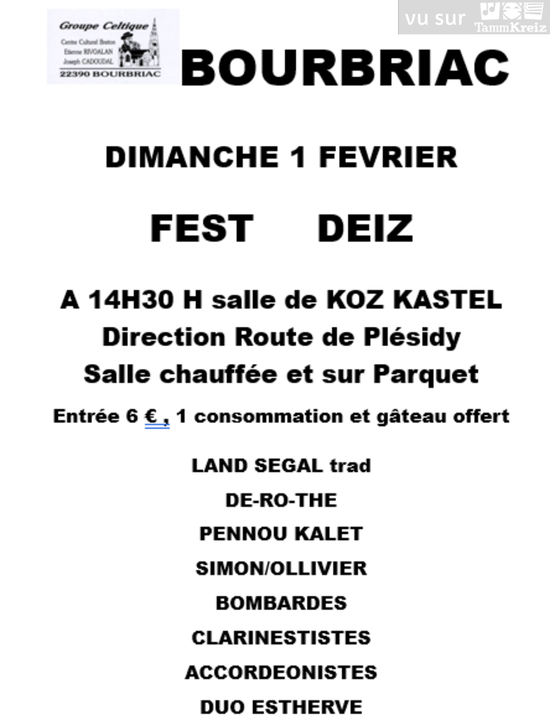Fest Noz à Bannalec le Samedi 05 mars 2022