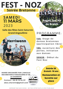 Fest Noz à Saint-Saturnin le Samedi 11 mars 2023
